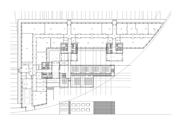 Un volumen de dos plantas con aulas de diferentes dimensiones a ambos lados de un pasillo central. El edificio se une a la construcción ya existente diseñada por Antonio Fernández Alba con acceso desde el vestíbulo de este edificio.