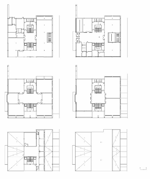 En una planta casi cuadrada un núclo de accesos central comunica las diferentes plantas. Un proyecto integrado por Biblioteca, aulas y espacios de trabajo con despachos. La diferencia de cota de las calles deja una planta inferior en uno de sus lados.