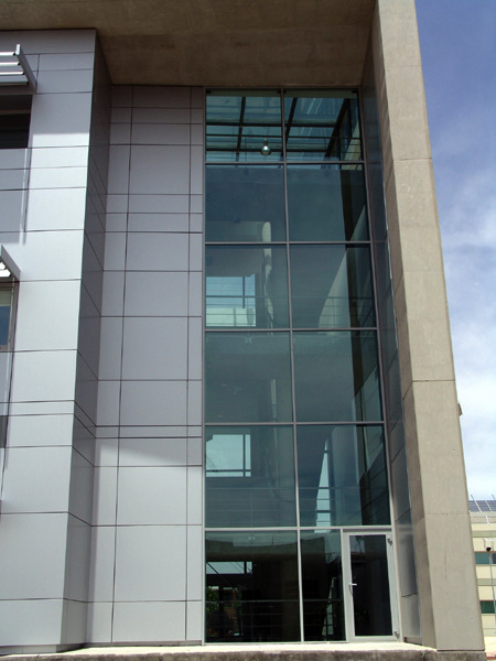 Edificio inicial del Parque Científico y tecnológico para oficinas centrales del conjunto y vivero de empresas. 3 plantas con un volumen acristalado del núcleo de escaleras y accesos.
