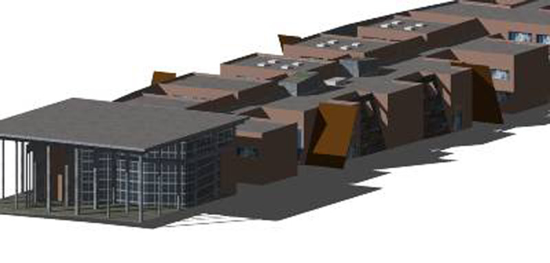 Campus universitario de la UCLM en Albacete. Edificio de 10.000 metros cuadrados construidos con dos plantas y cerca de 200 metros de longitud. Zonas de aulas, seminarios, laboratorios y un módulo final de despachos de profesores.