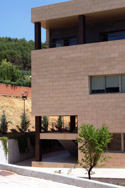 El juego de volúmenes con vacios y espacios completos define la imagen del edificio en un nuevo viario situado en la parte posterior del Gil de Albornoz y que comunica con la zona de nueva ampliación donde se ubican la Facultad de Bellas Artes, el Aulario y la Politécnica.