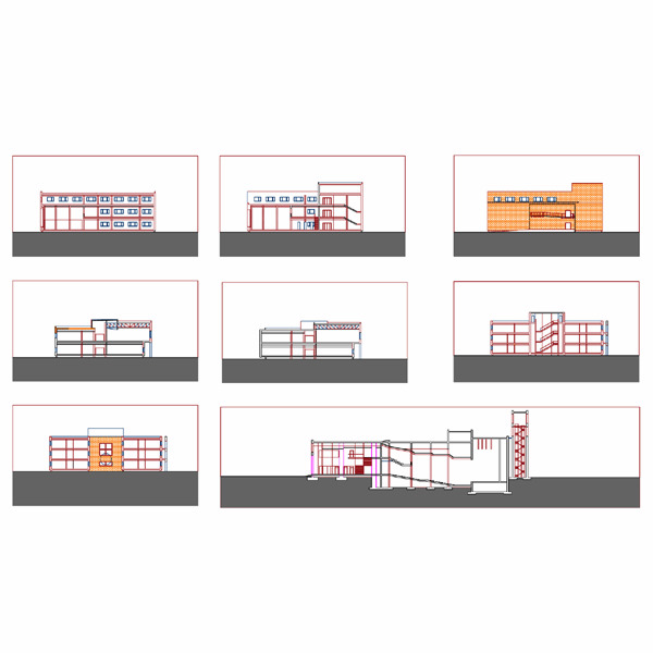 Edificio integrado por cinco módulos con cierto nivel de independencia y comunicación. El primero de ellos alberga la Biblioteca del edificio y un grupo de despachos en la tercera planta.