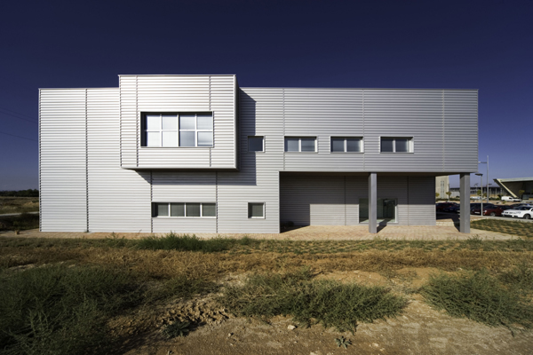Todo el exterior está realizado con chapa plegada de color acero que da unidad a los volúmenes diversos de los diferentes elementos del conjunto.