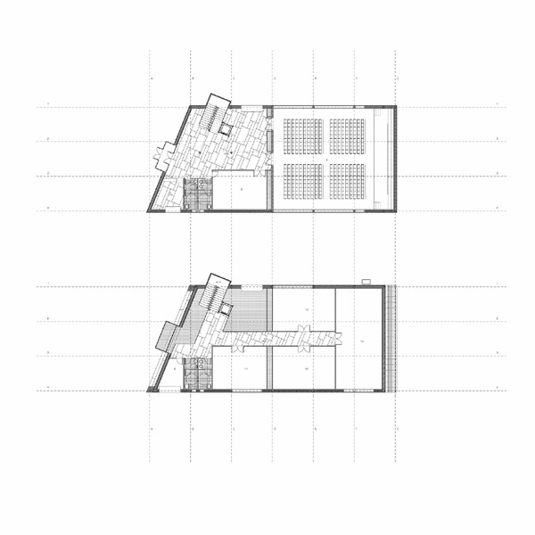 En la entrada al recinto dos volúmenes uno de ellos laboratorios de investigación y el otro con zonas administrativas, salón de actos y espacios para actividades divulgativas.