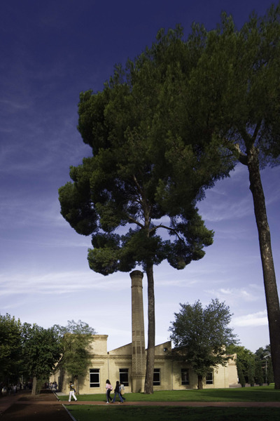 Acceso a zona de aulas y salón de grados con zona de hornos conservada.